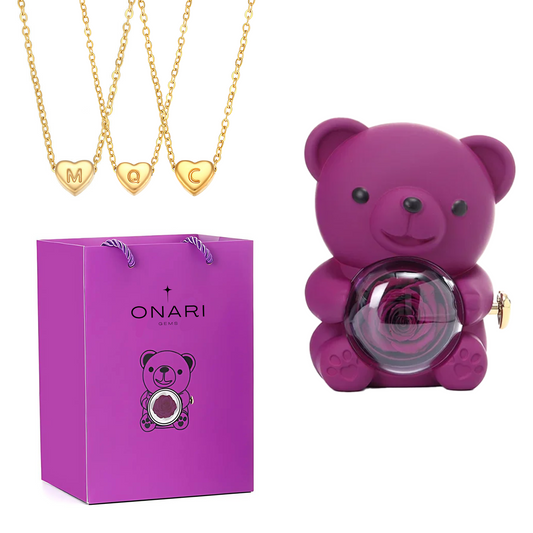 Eternal Rose Bear - & Initial Heart Necklace